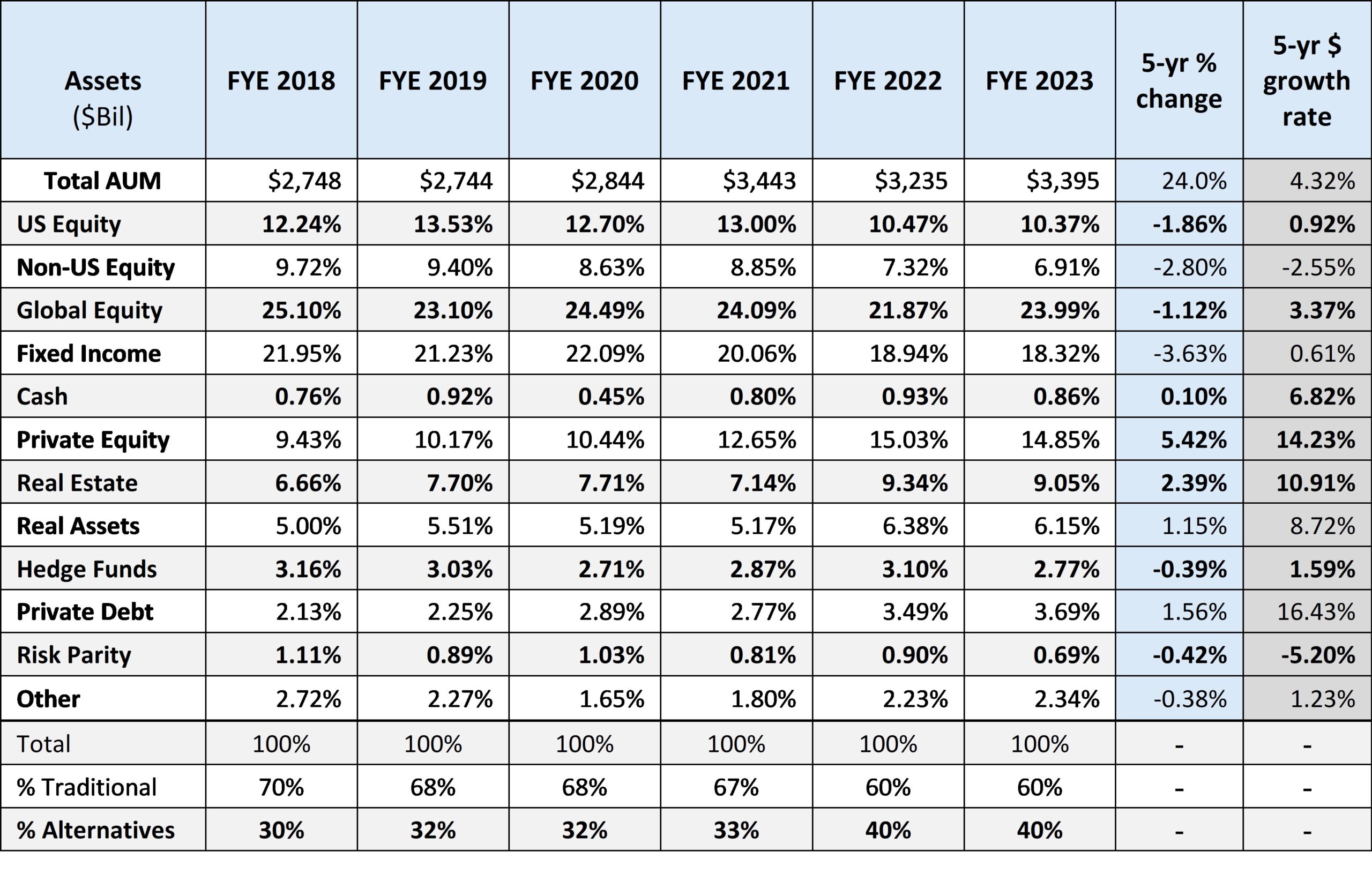 Most big dollar state pensions still follow the herd. CalPERS recently announced they’re going large on private assets with a target 40% allocation, about $225 billion of the $563 billion dollar fund.